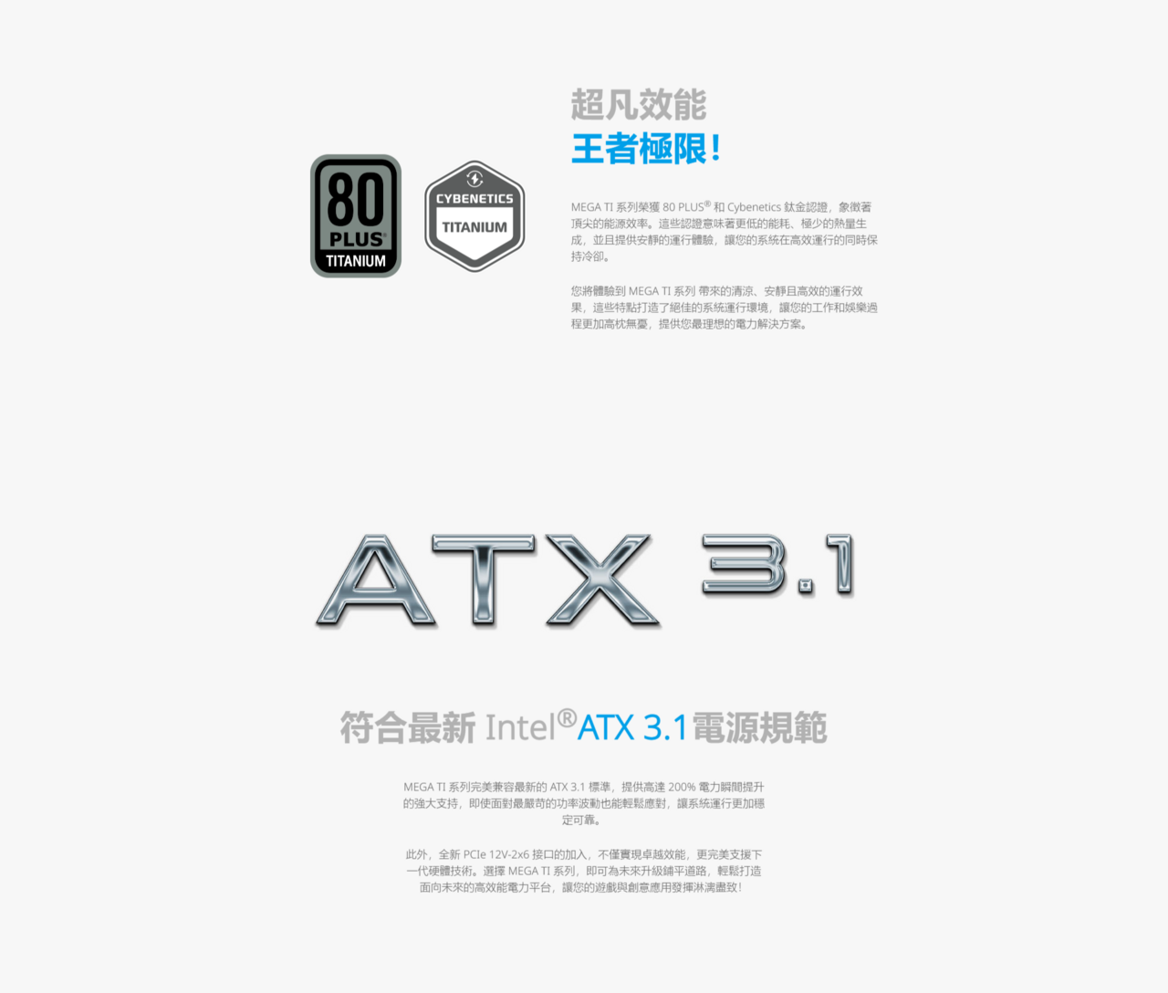 ‧符合最新ATX12V V3.1 及 EPS12V V2.92 標準