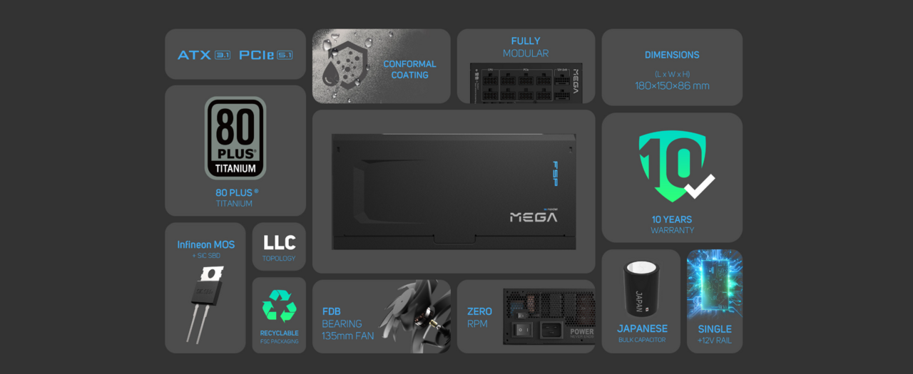 全漢 MEGA TI MIT 1650W 鈦金 全模(台灣製/ATX3.1/PCIE5.1/10年保/2年快換)