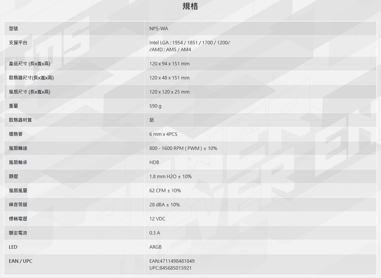 全漢 NP5 WHITE(4導管/高15.1cm)