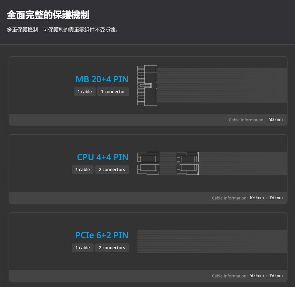 ‧支援最新 PCIe 12V-2x6 供電標準 (850W / 750W)