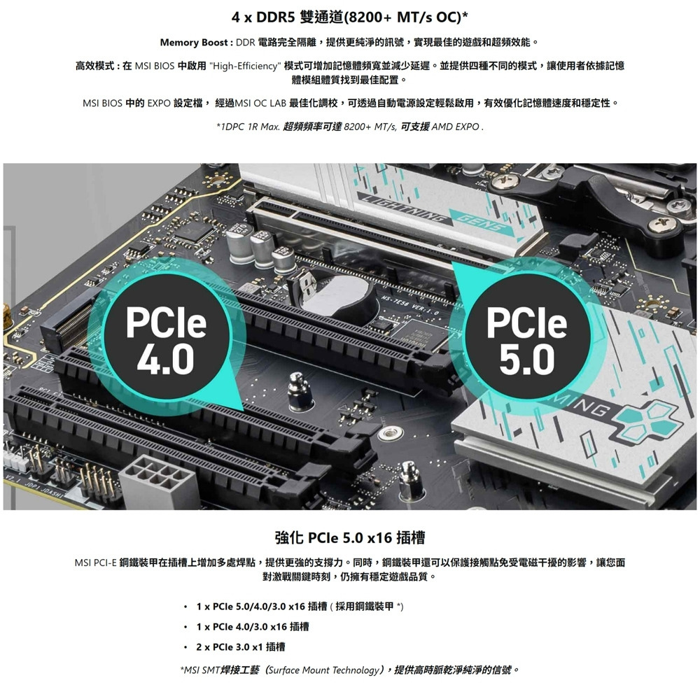 ‧閃電極速遊戲體驗:PCIe 5.0 插槽、Lightning Gen 5 x4 M.2、Front USB Type-C