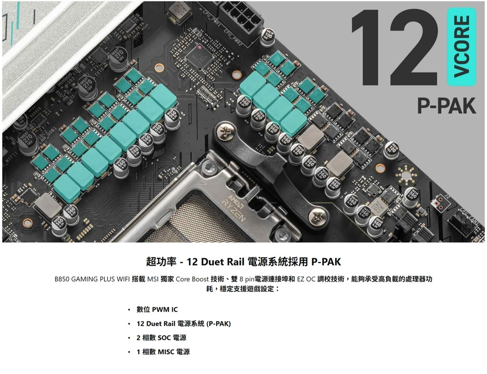 ‧超性能 : 12+2+1 Duet Rail 電源系統並採用雙 8-pin CPU 電源連接埠、Core Boost、Memory Boost、採用 2oz 厚度銅的6層伺服器等級PCB。