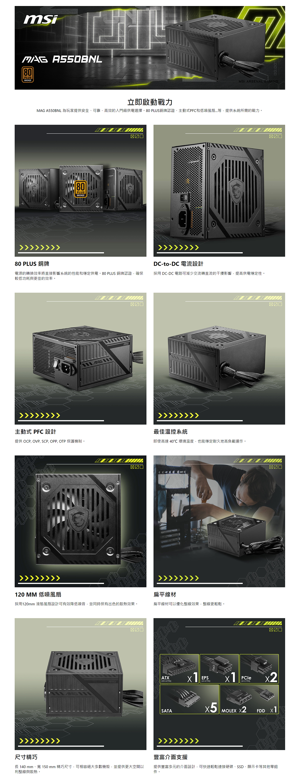 微星 MAG A550BNL 550W 銅牌(5年保/2年快換)