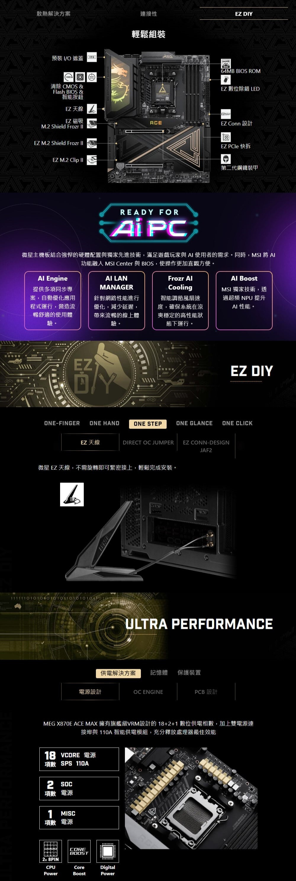 ‧EZ DIY: EZ PCIe 快拆設計, 第二代 EZ M.2 Shield Frozr 散熱鎧甲, EZ M.2 Clip II 和 EZ 天線。
