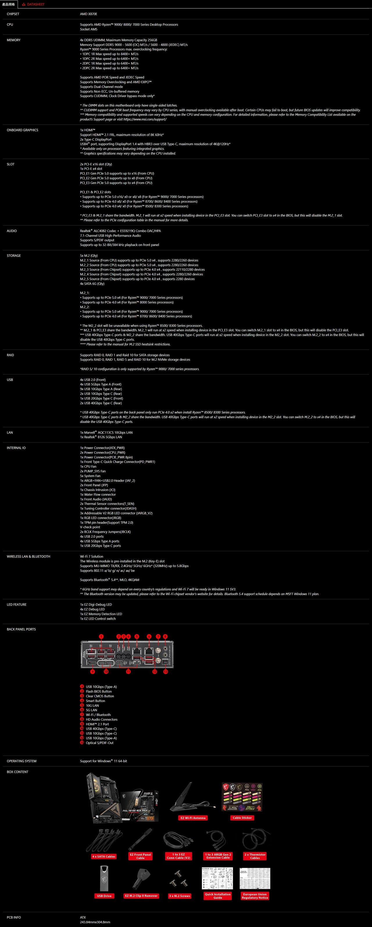 微星 MEG X870E ACE MAX WIFI(ATX/3+2年保)