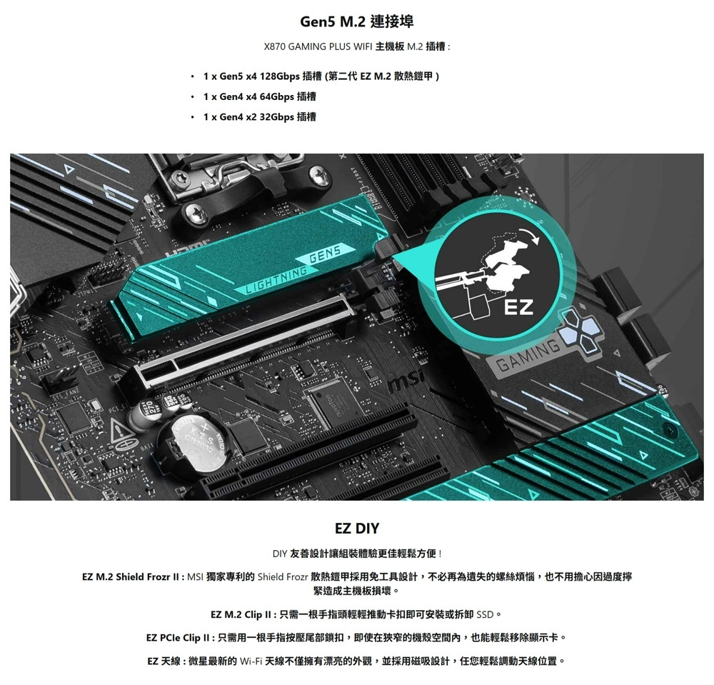 ‧EZ DIY: EZ M.2 Shield Frozr II、EZ M.2 Clip II、EZ PCIe Clip II 和 EZ 天線。