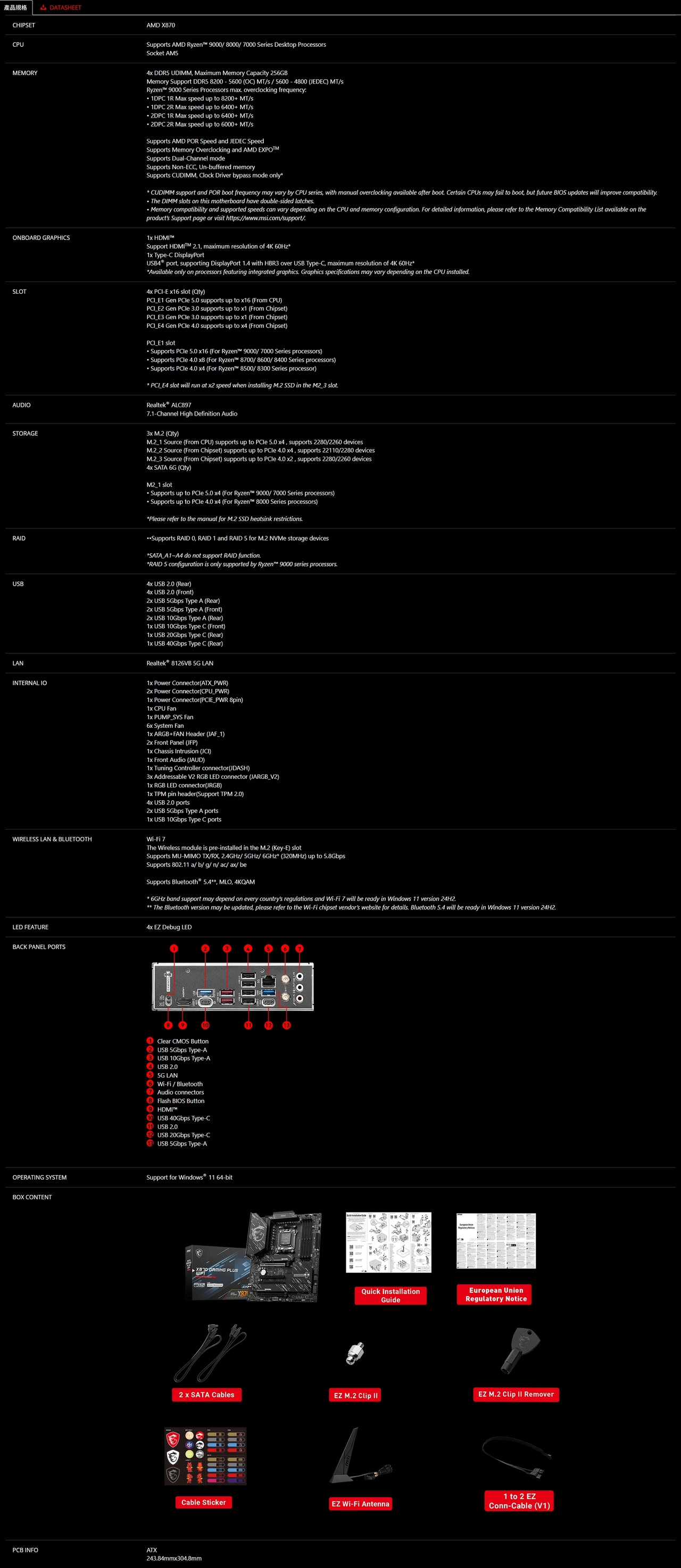 微星 X870 GAMING PLUS WIFI(ATX/3+2年保)