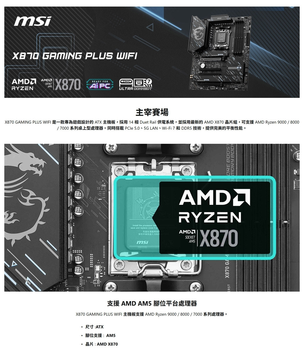 ‧支援 AMD Ryzen™ 9000 / 8000 / 7000 系列桌上型處理器。