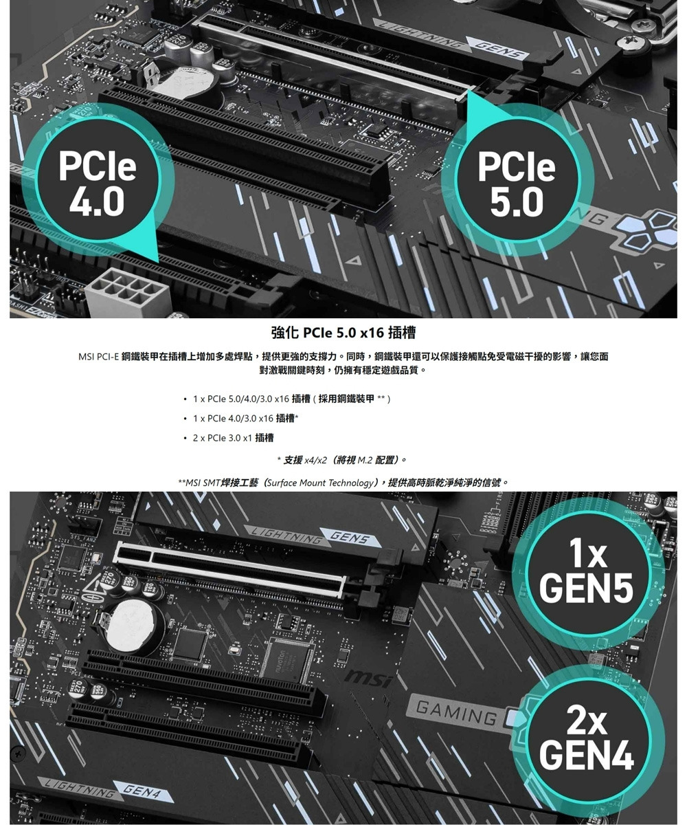 ‧閃電極速遊戲體驗:PCIe 5.0 插槽、Lightning Gen 5 x4 M.2