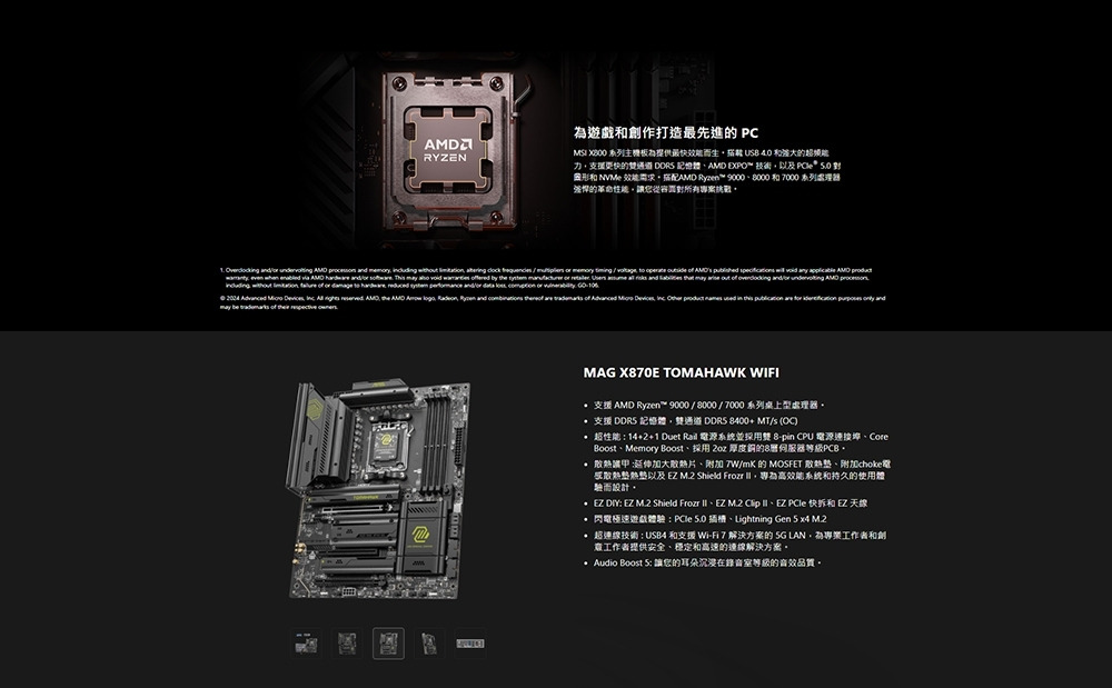 ‧支援 AMD Ryzen™ 9000 / 8000 / 7000 系列桌上型處理器。