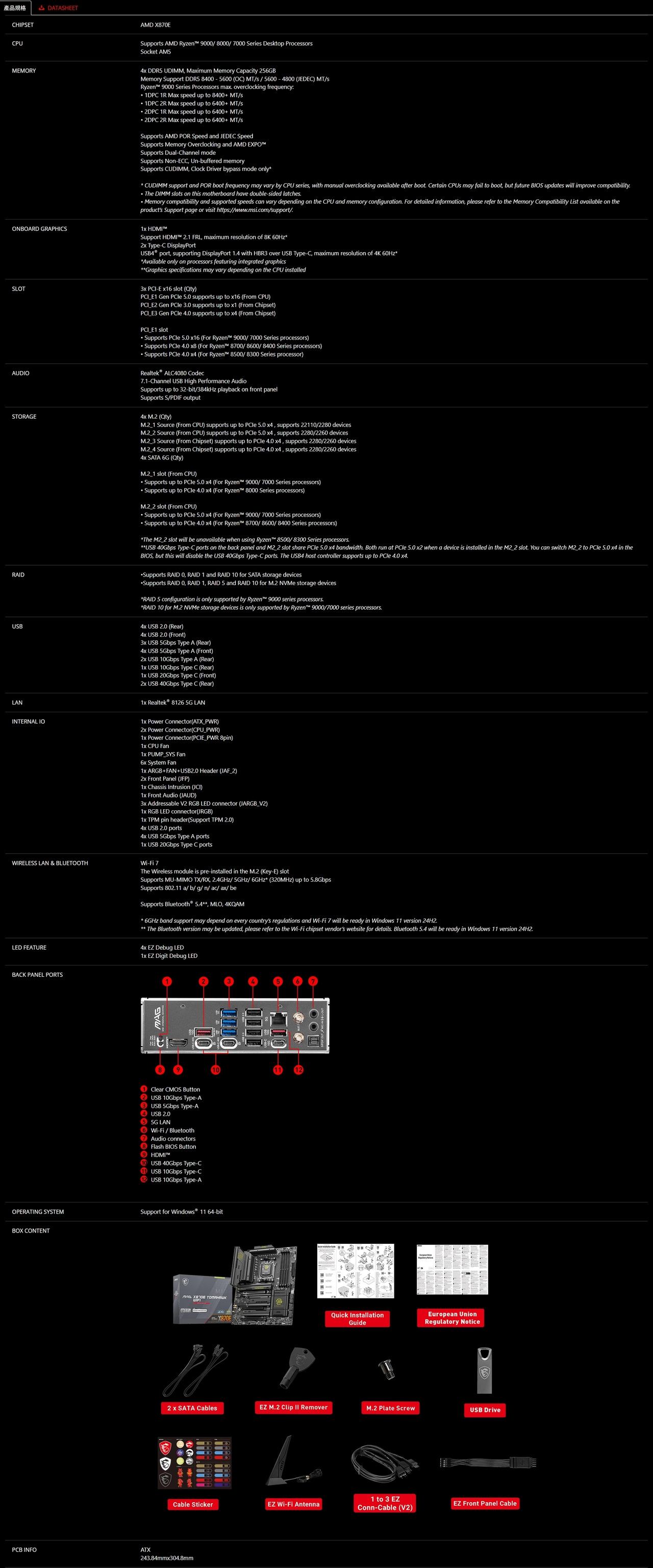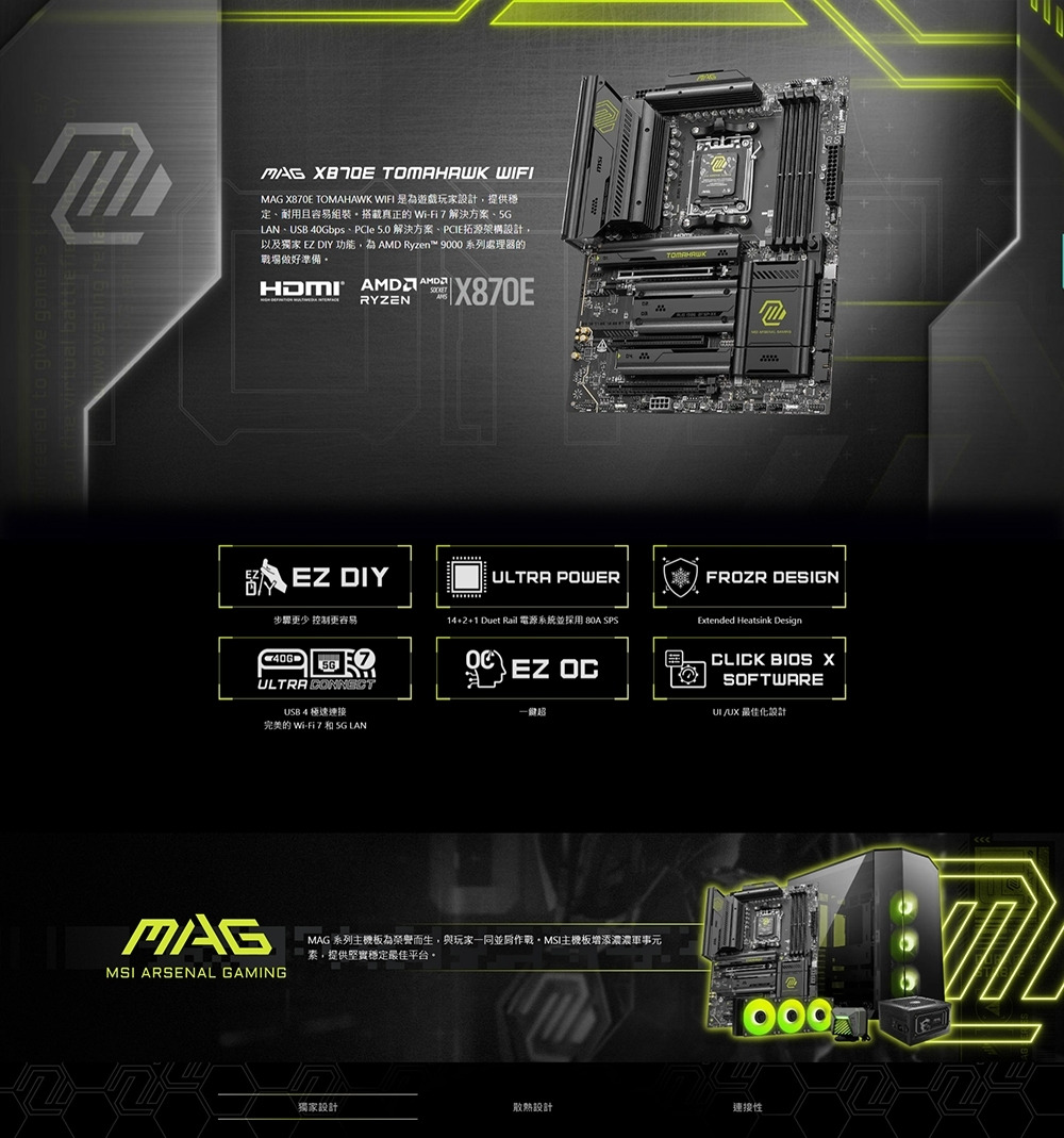 微星 MAG X870E TOMAHAWK WIFI(ATX/3+2年保)