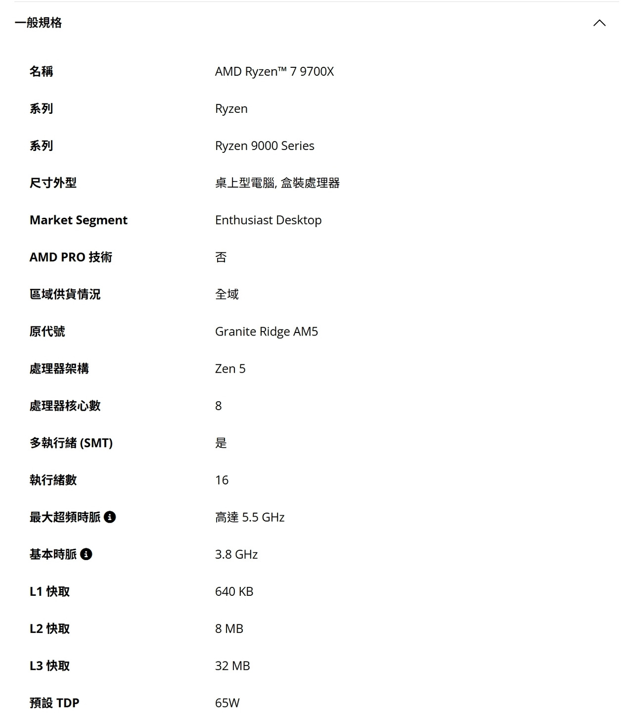 系列 / 型號:Ryzen 7 9700X