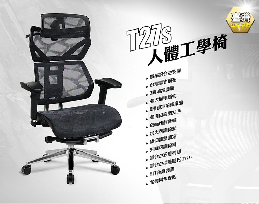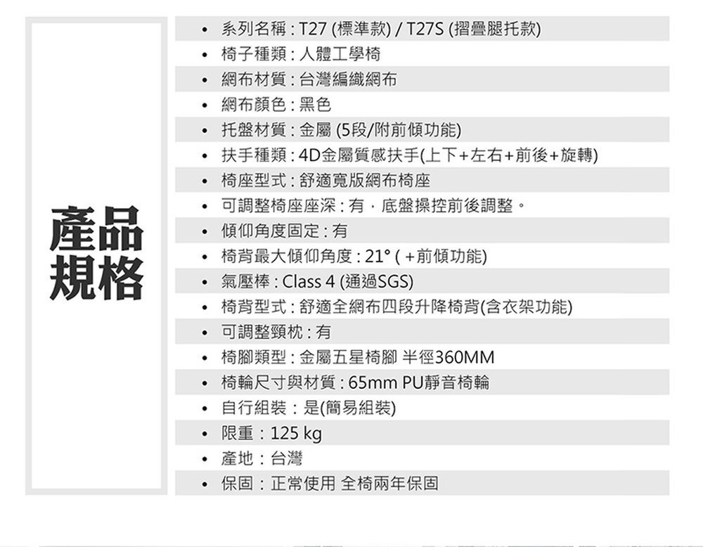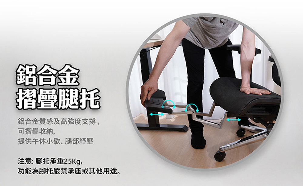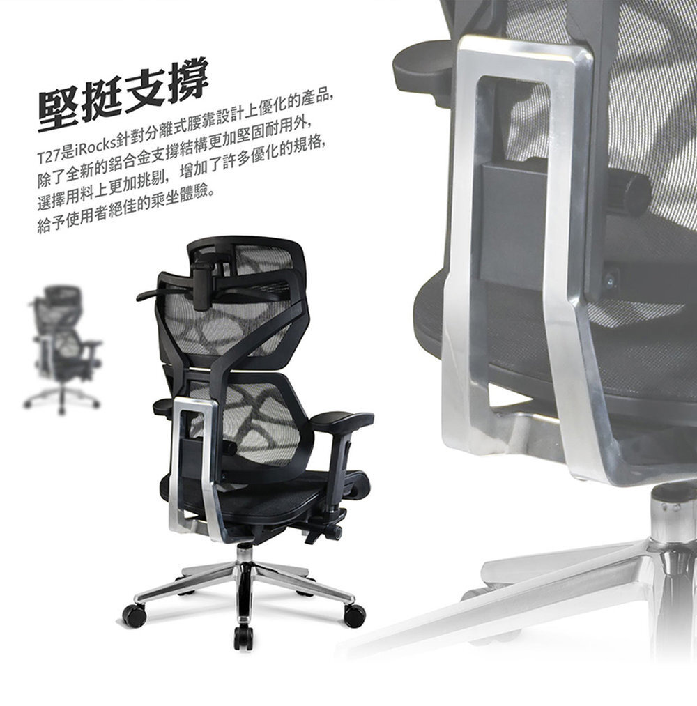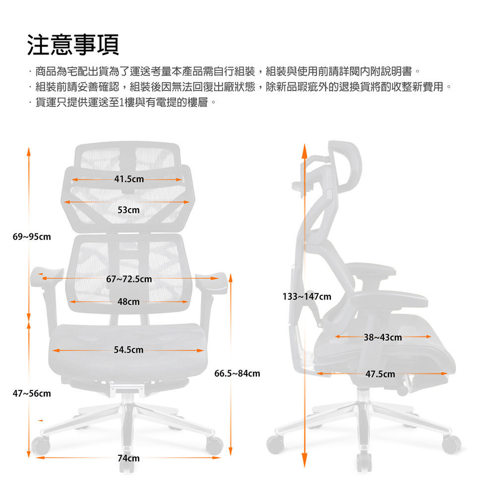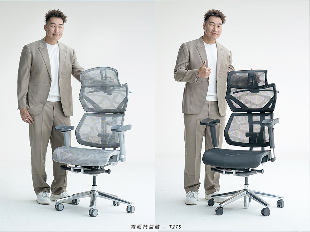 椅背型式 : 舒適全網布四段升降椅背(含衣架功能)