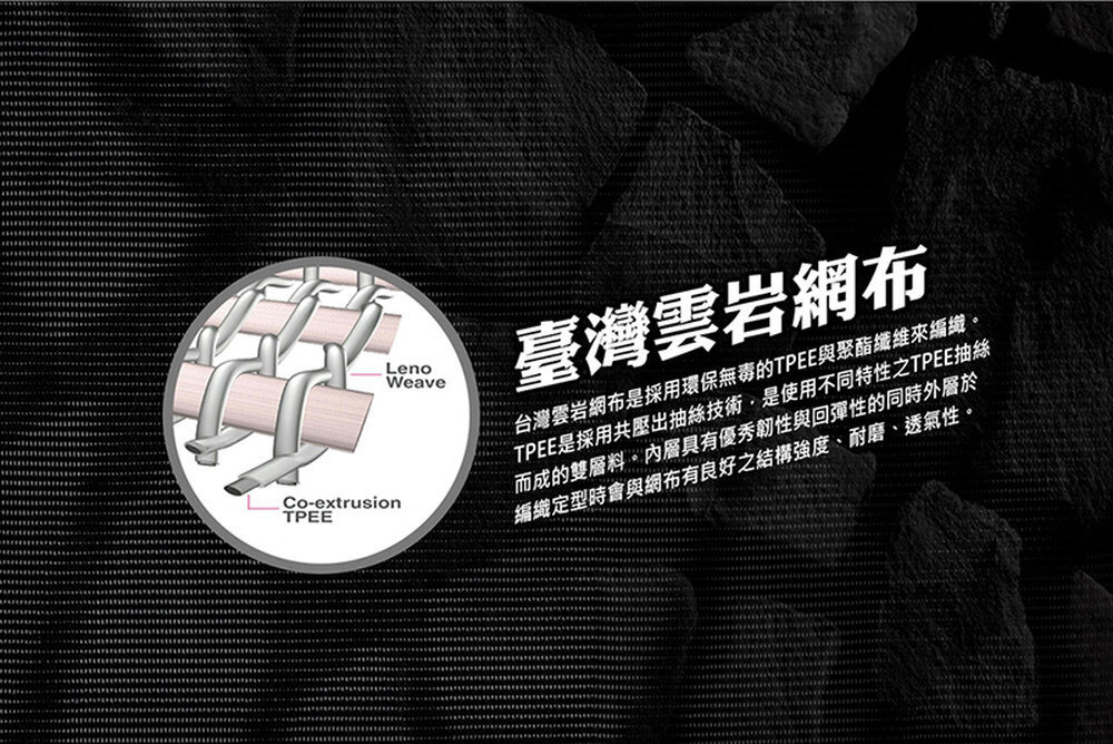 網布材質 : 台灣製編織雲岩網布