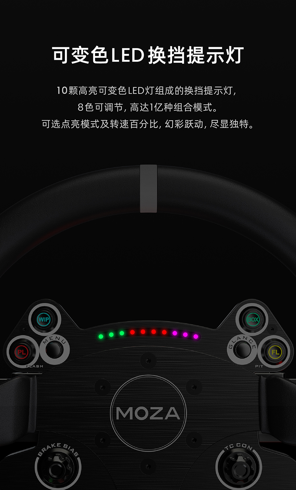 • 支援 MOZA Pit House 智能遙測與燈光設定