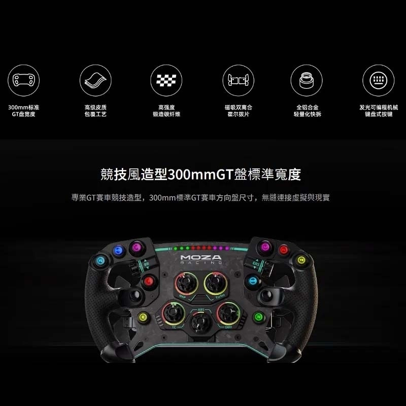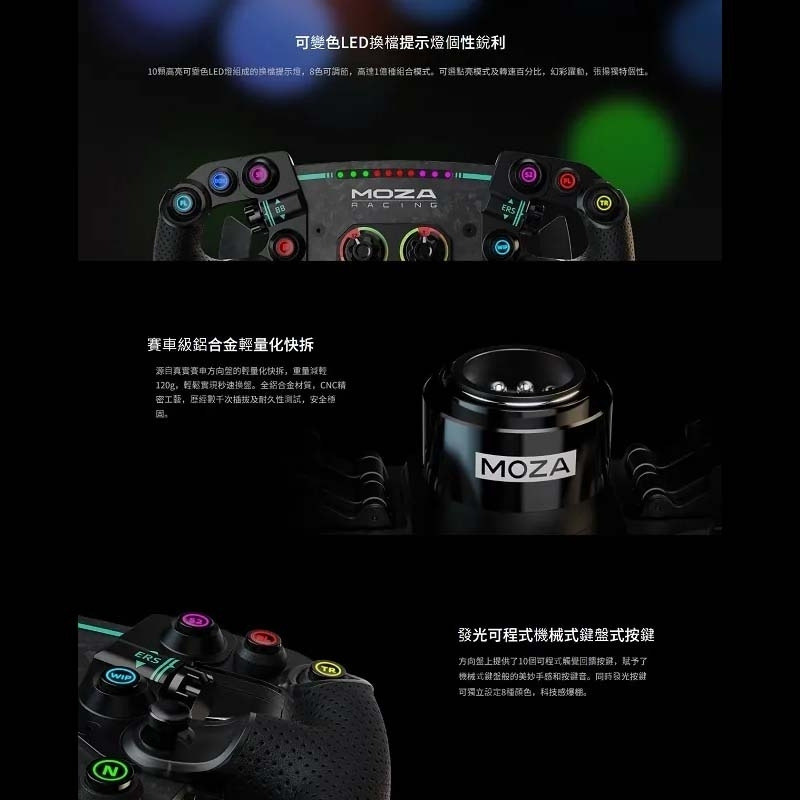 • 支援 MOZA Pit House 智能遙測與燈光設定