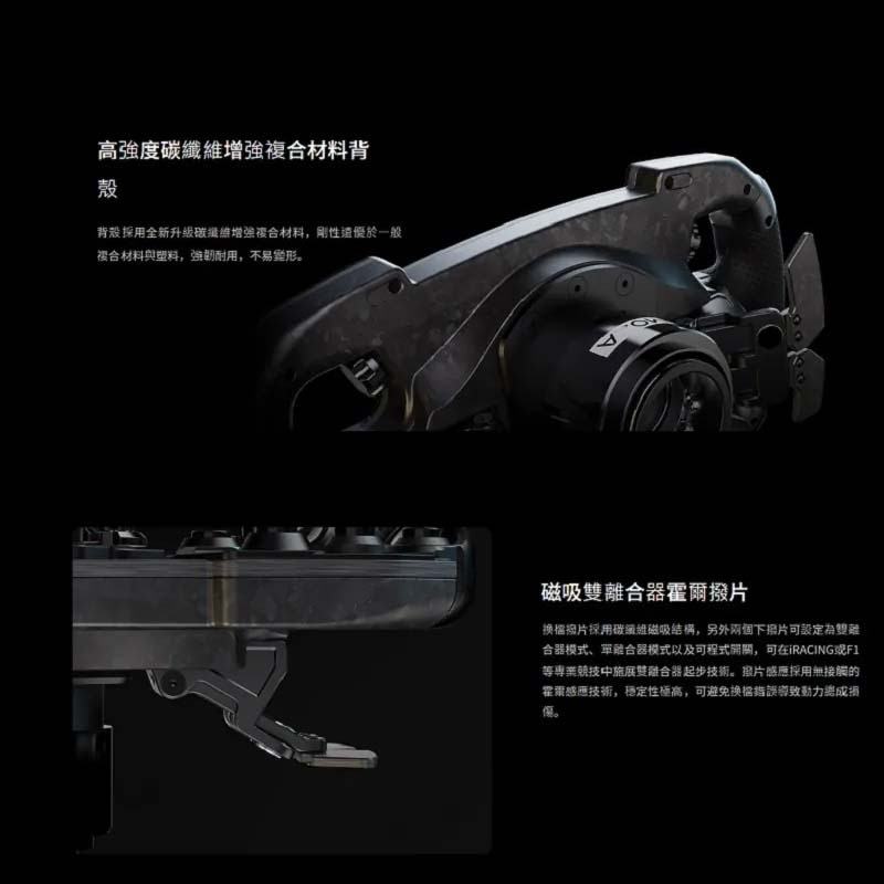 • 鍛造碳纖維面板與骨架,輕量高強度