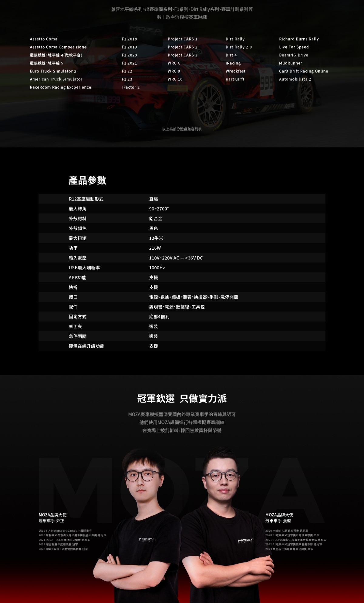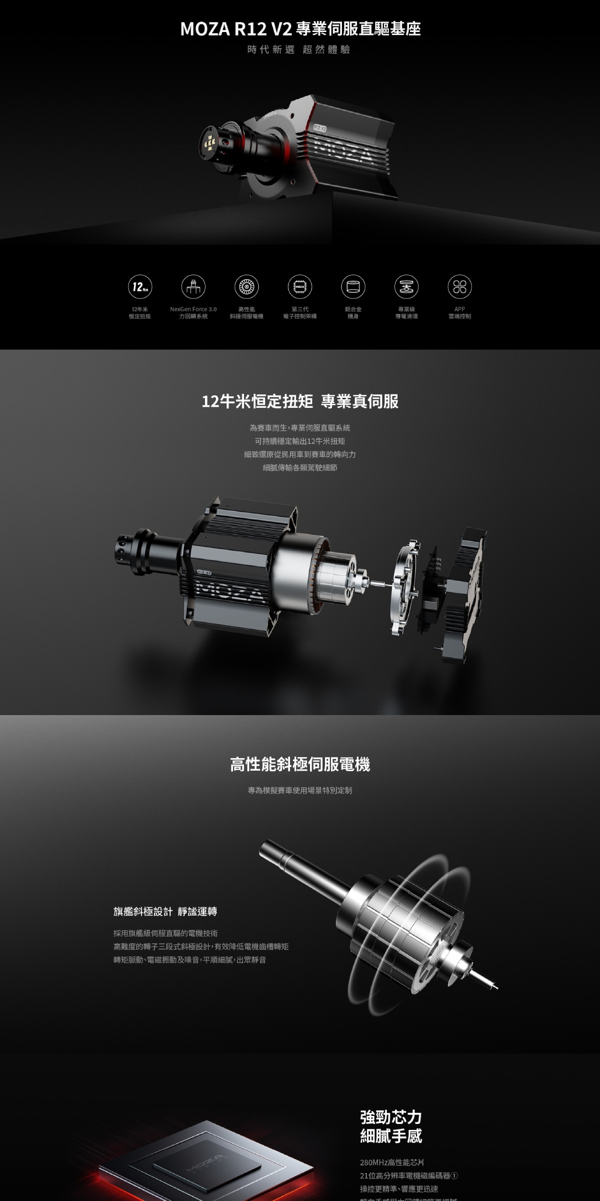 • 產品名稱:MOZA RACING R12 V2 直驅賽車基座