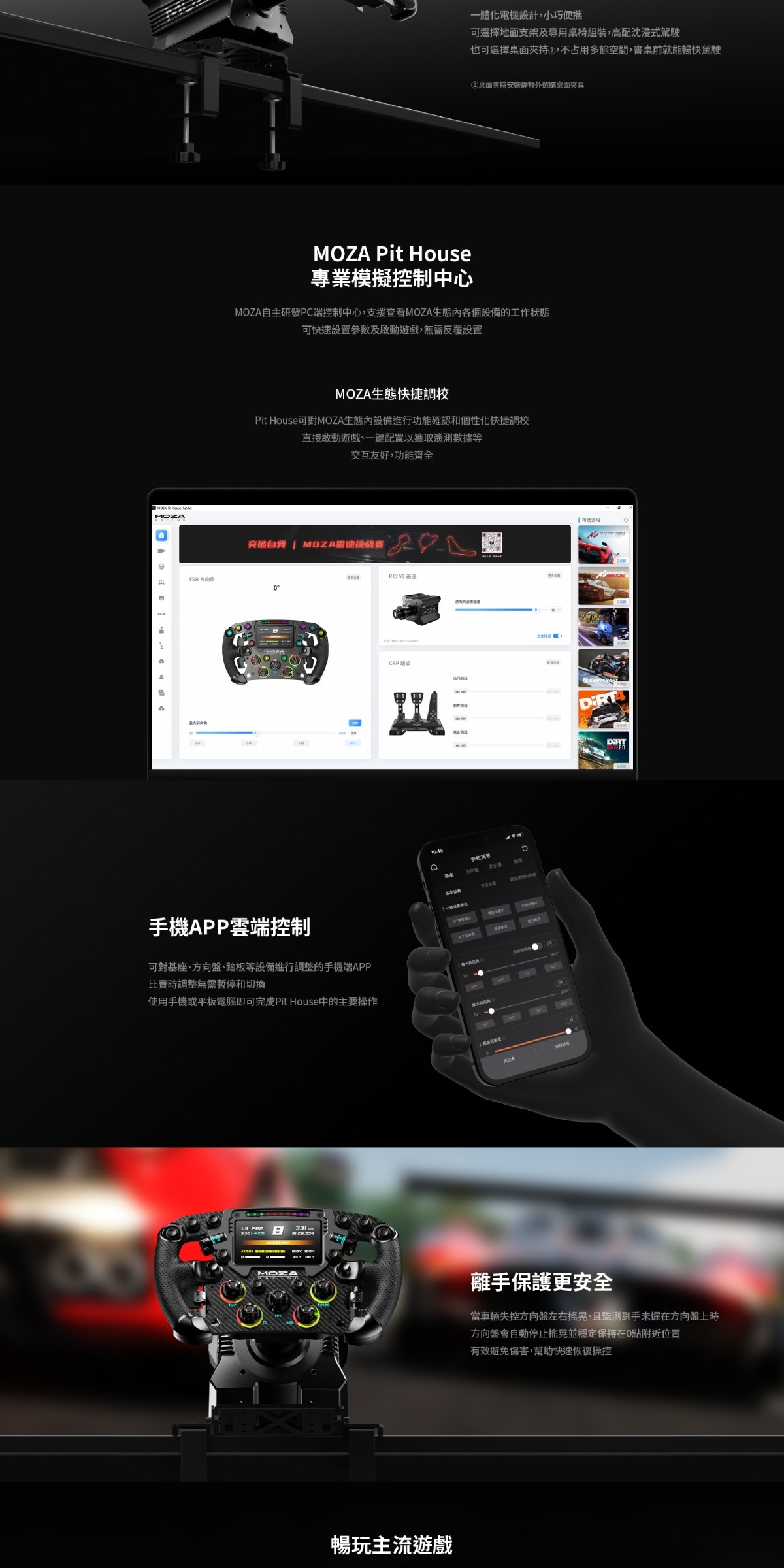 • MOZA Pit House 與手機 APP 雙重調整系統