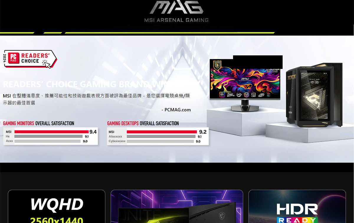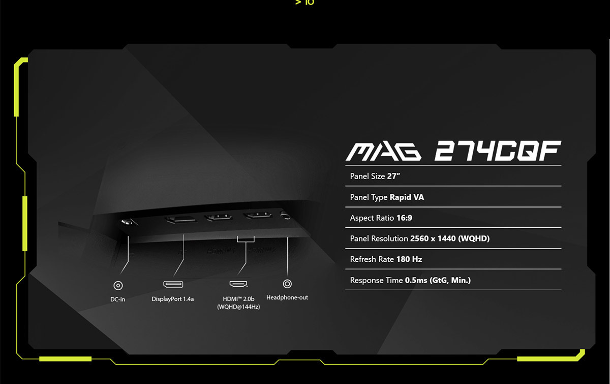 MSI MAG 274CQF 27型 VA 2K 180Hz 曲面電競螢幕(WQHD/0.5ms/HDR)