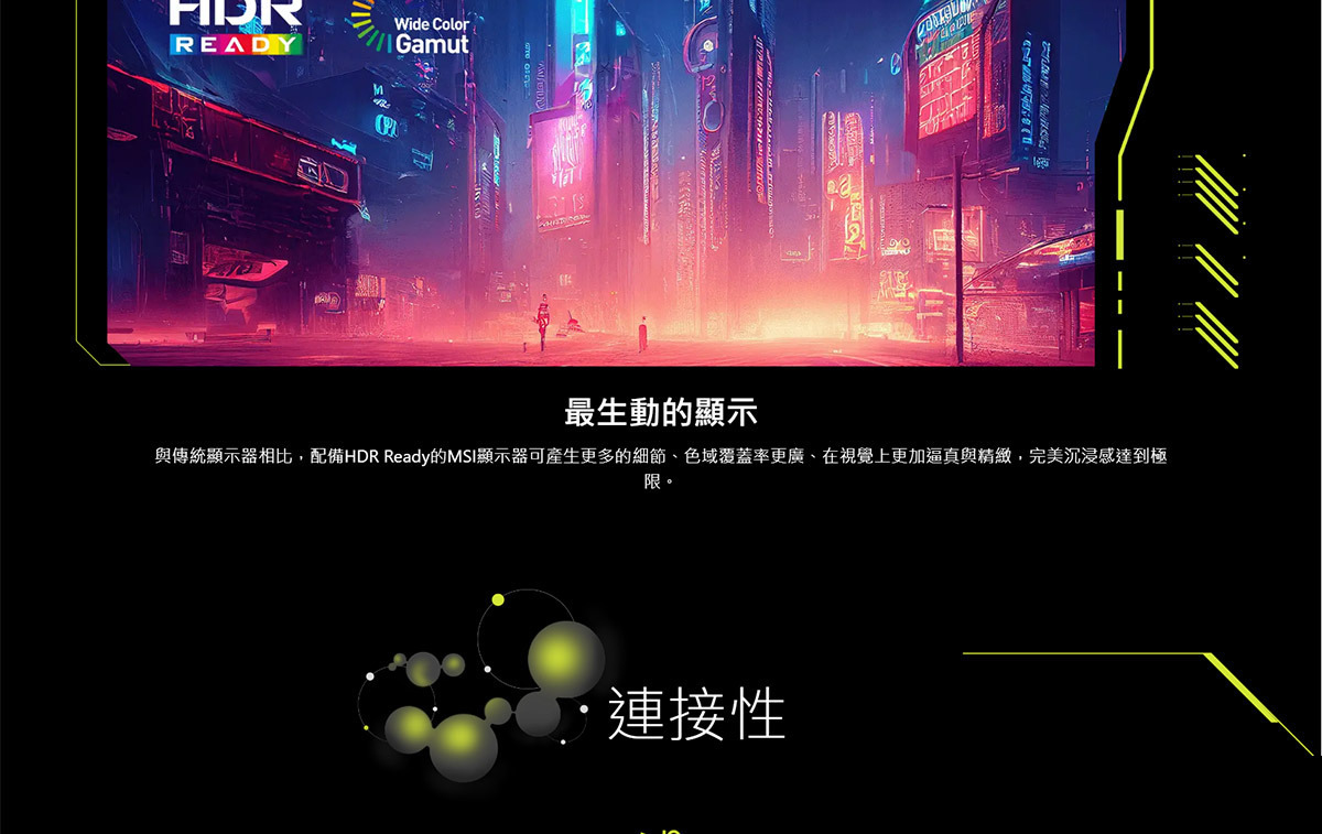 • HDR Ready 與廣色域支援,畫面對比更好、顏色更自然