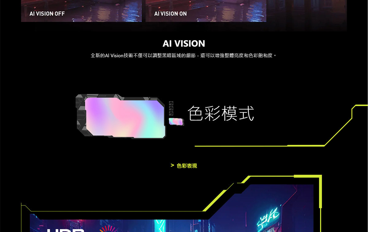 • AI Vision 技術,暗部細節更清楚、色彩更鮮明