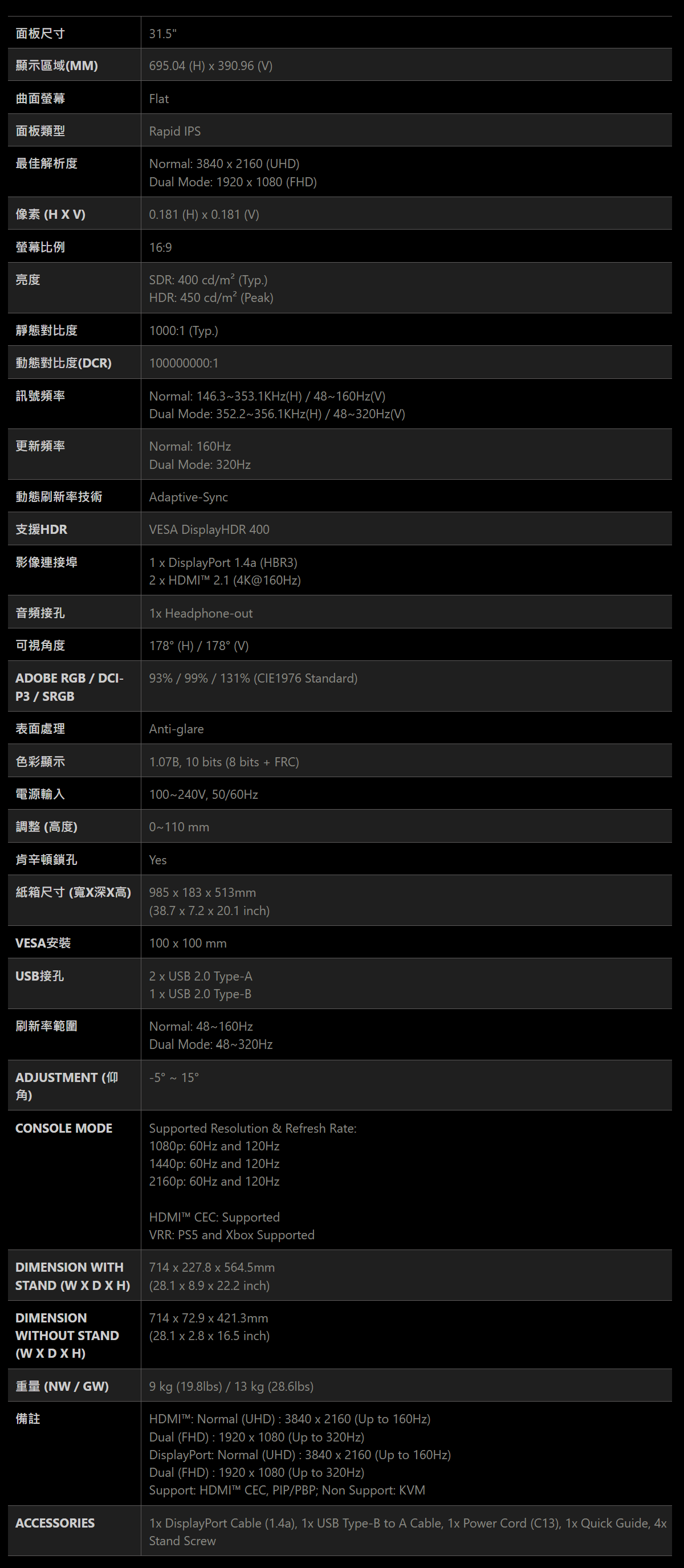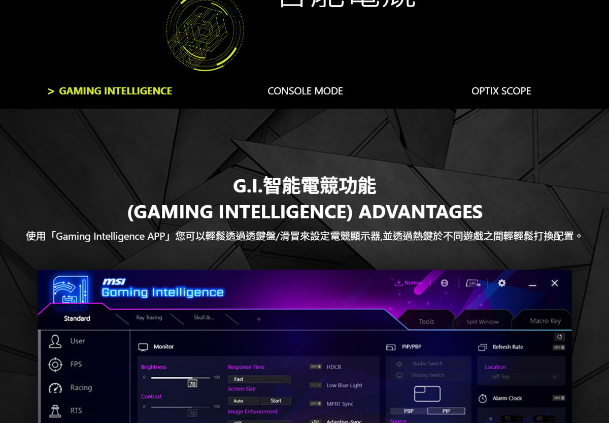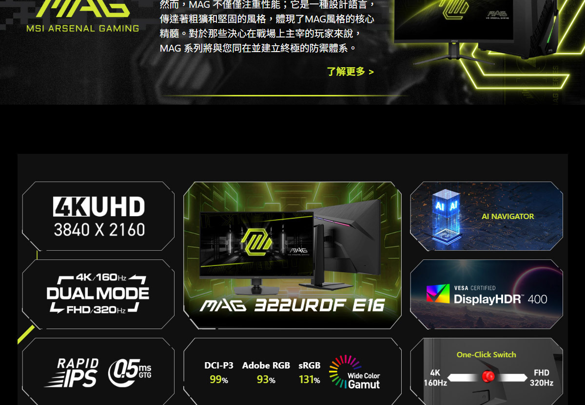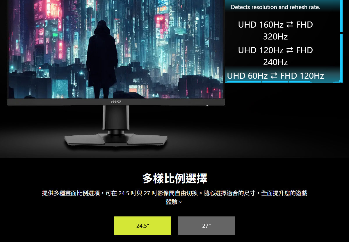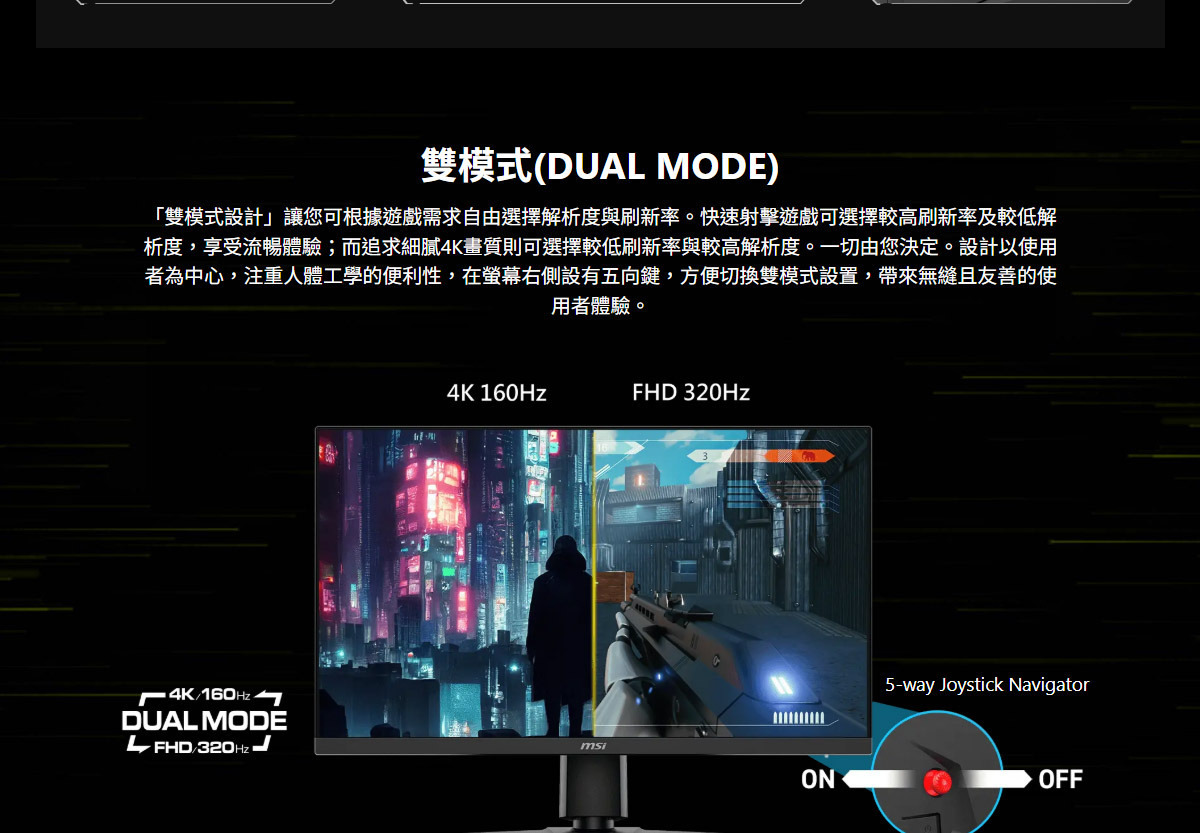 • 支援雙模式,依遊戲需求自由選擇解析度與刷新率