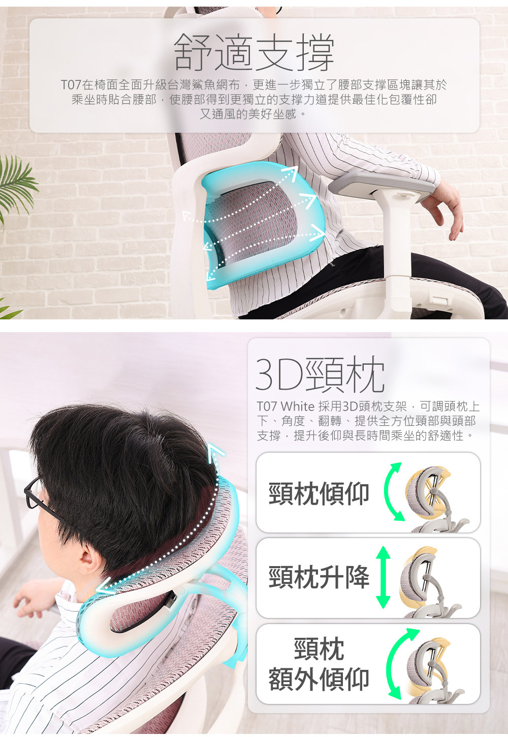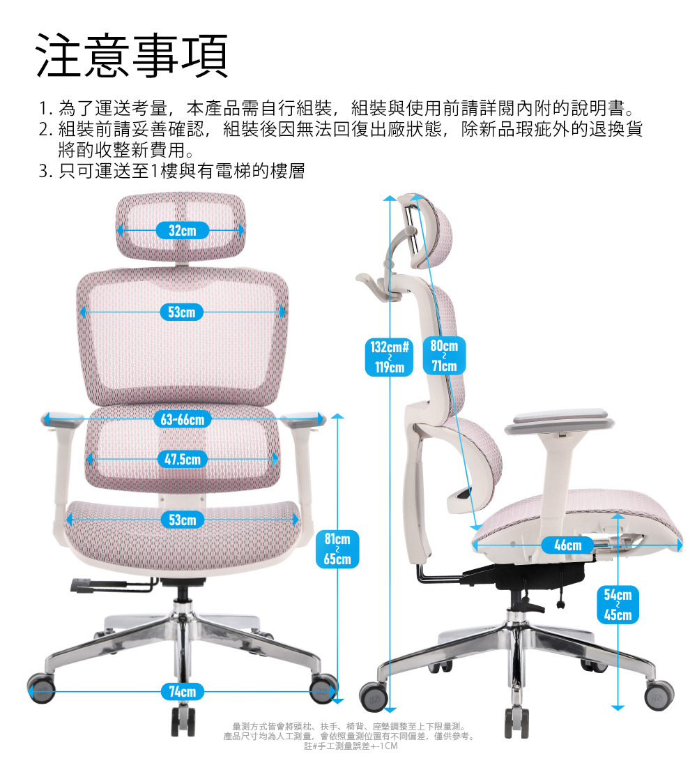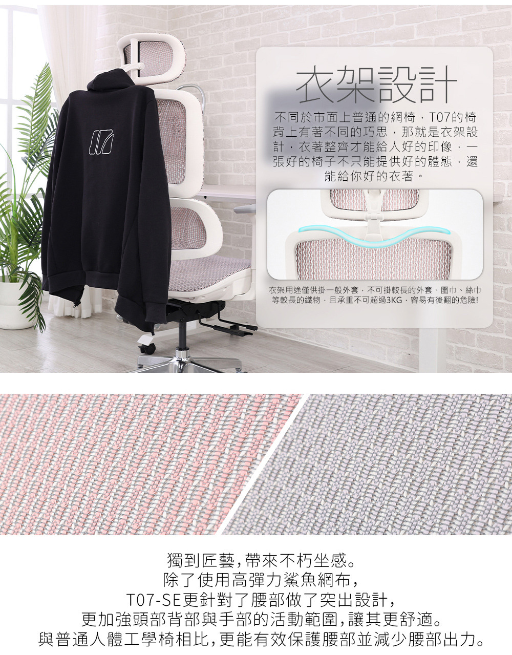 椅背型式:舒適全網布升降椅背(含衣架功能)