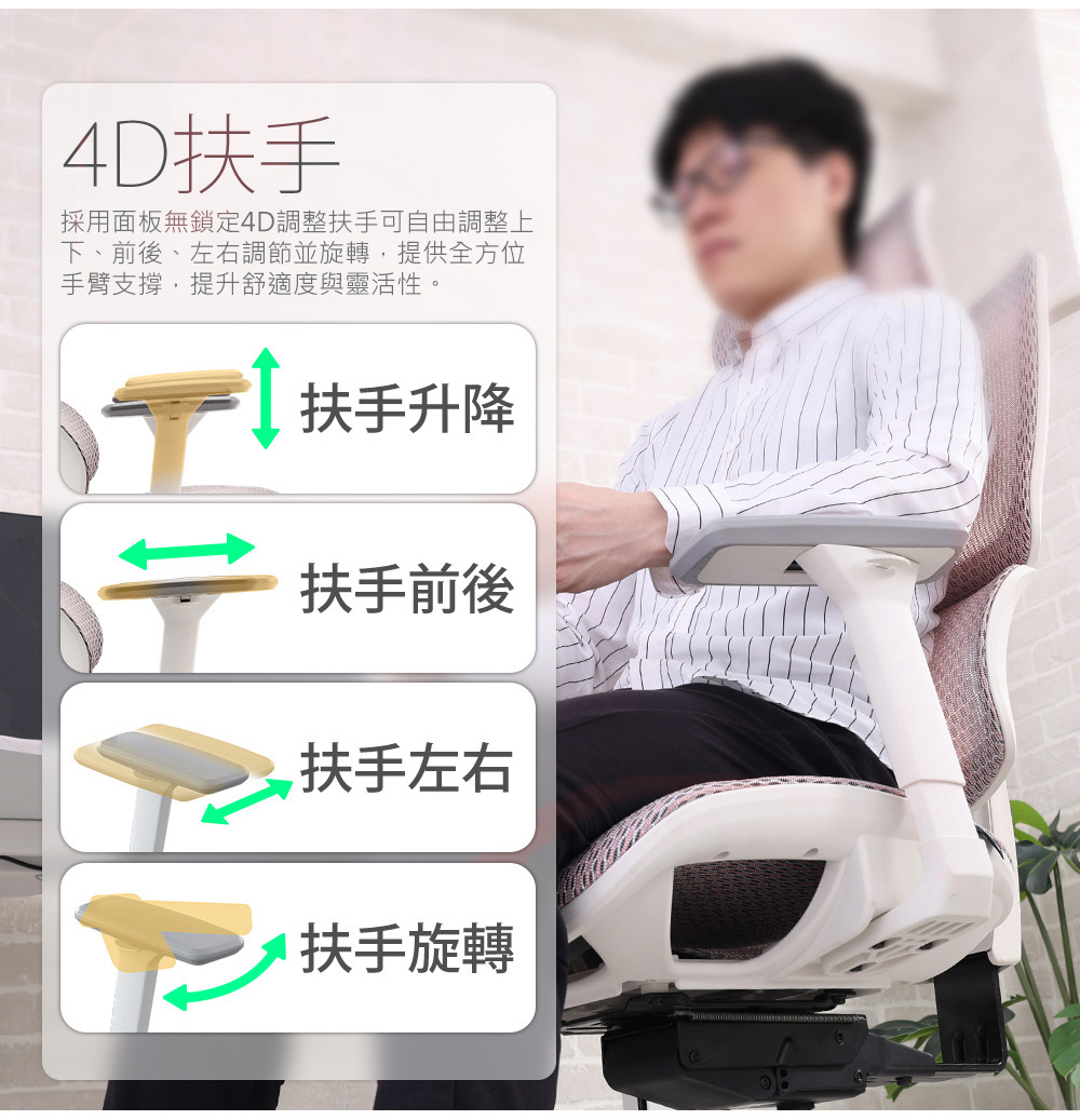 扶手種類:4D 扶手(上下 + 左右 + 前後 + 旋轉)