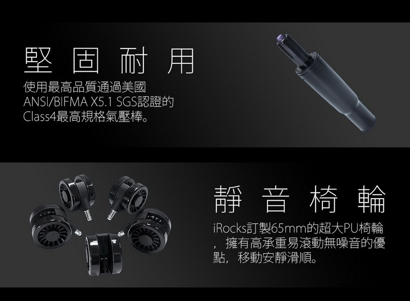 椅輪尺寸與材質:65mm / PU靜音椅輪