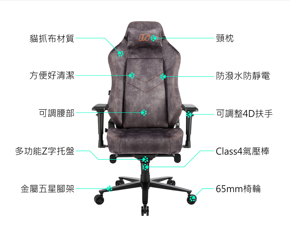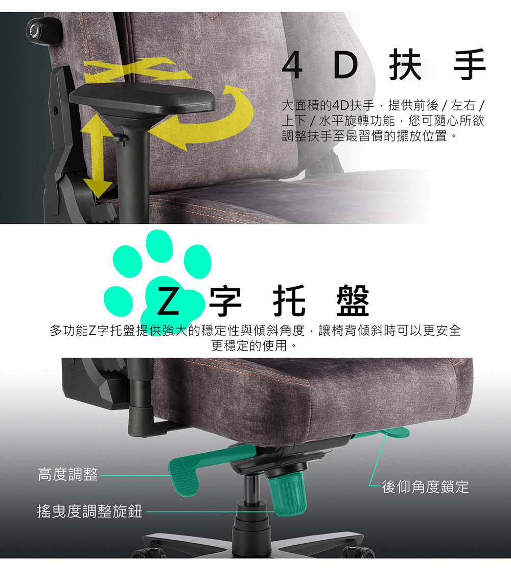 扶手種類:4D扶手(上下 + 左右 + 前後 + 旋轉)