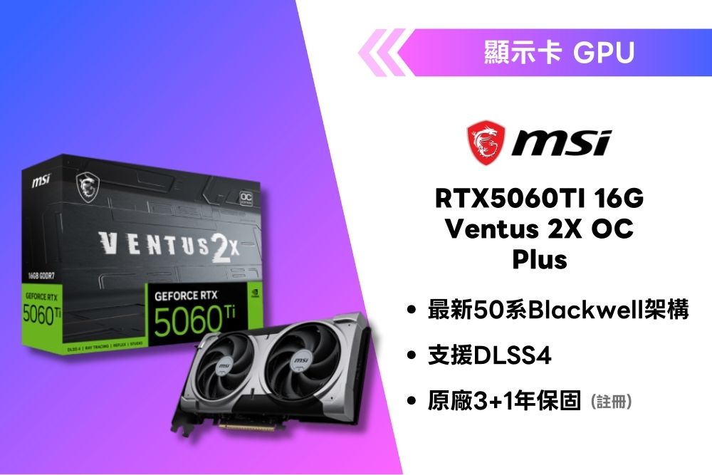 微星 MSI RTX5060TI 16G Ventus 2X OC PLUS