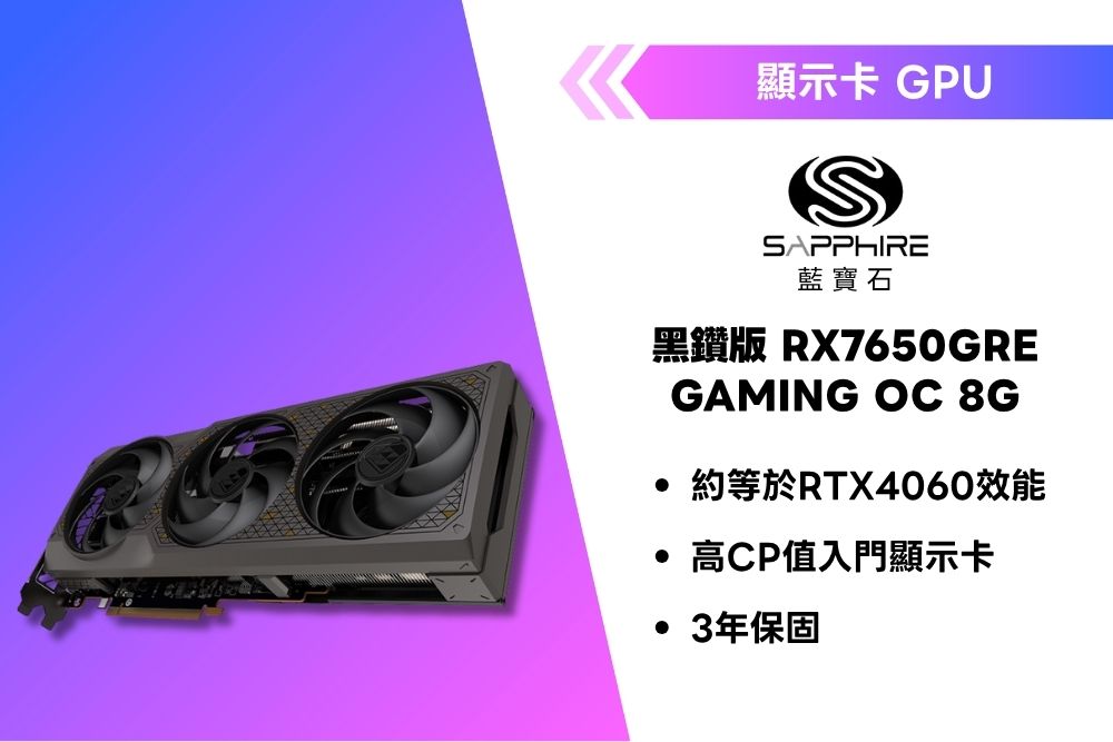 藍寶石 SAPPHIRE 黑鑽版 RX7650GRE GAMING OC 8GB 【原廠3年保】