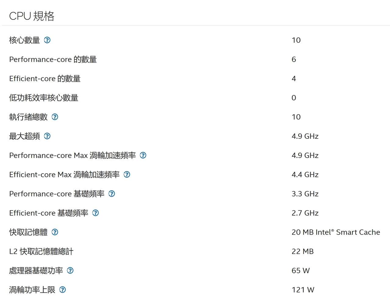 核心數:10