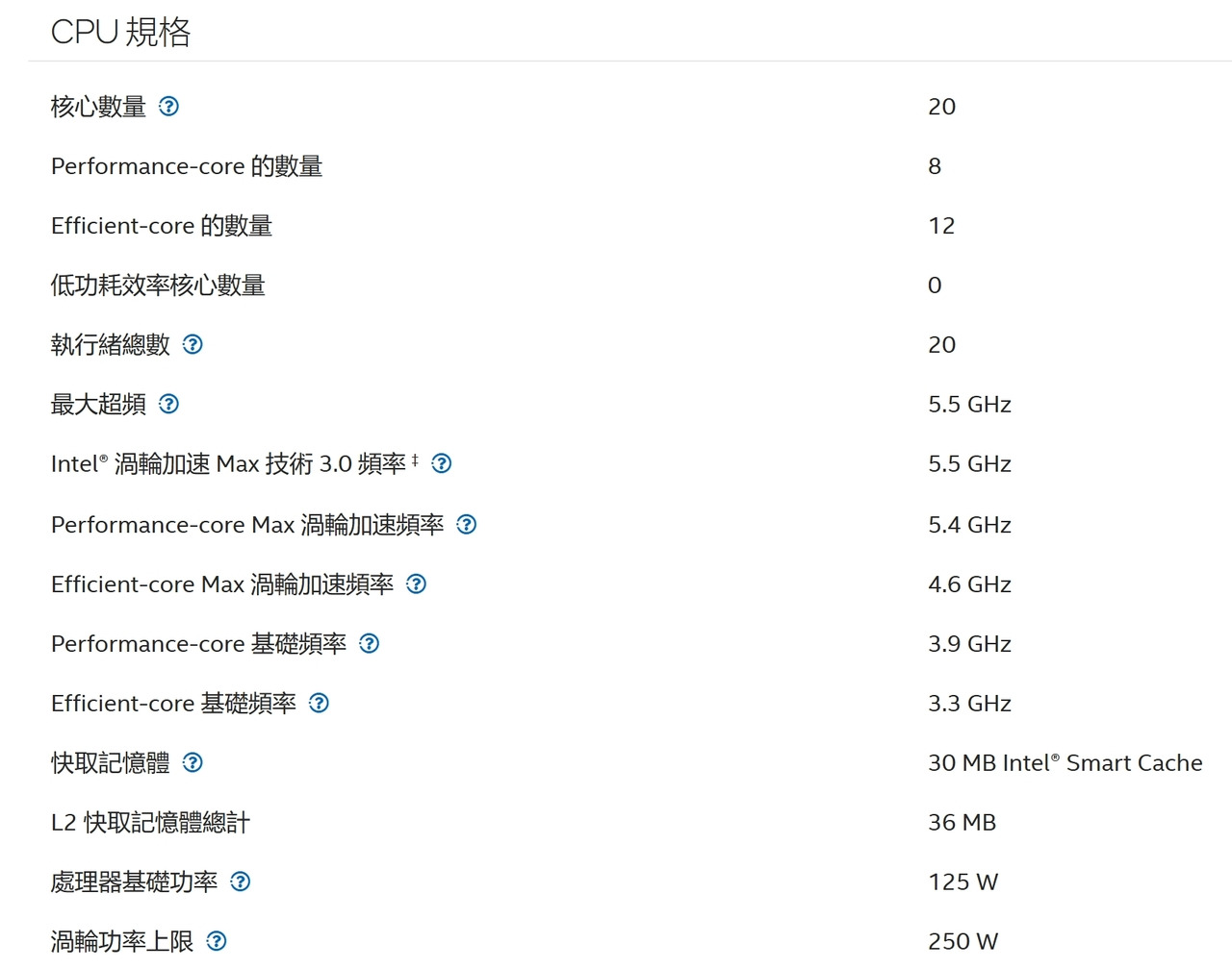 核心數:20
