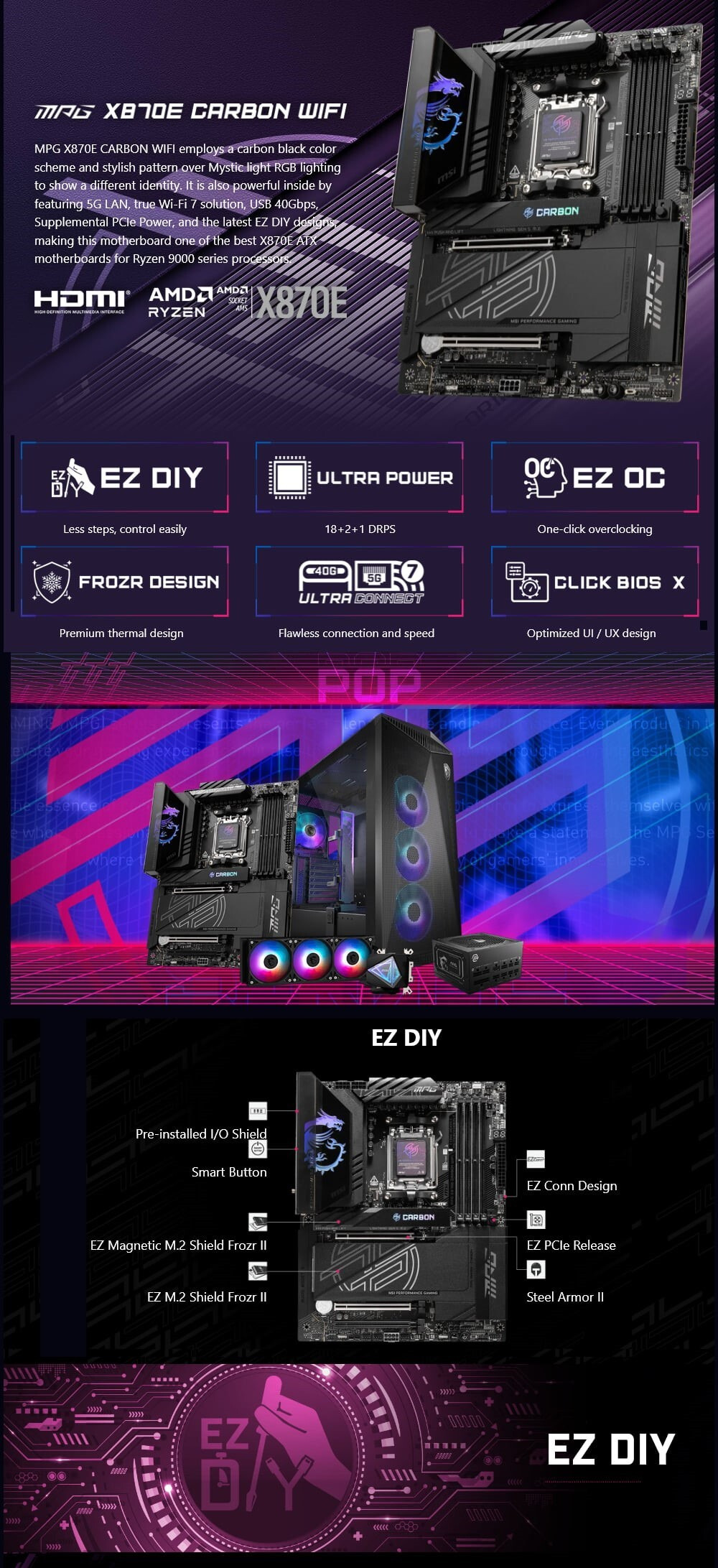 ‧EZ DIY: EZ PCIe 快拆設計、EZ M.2 Shield Frozr II、EZ M.2 Clip II 和 EZ 天線。